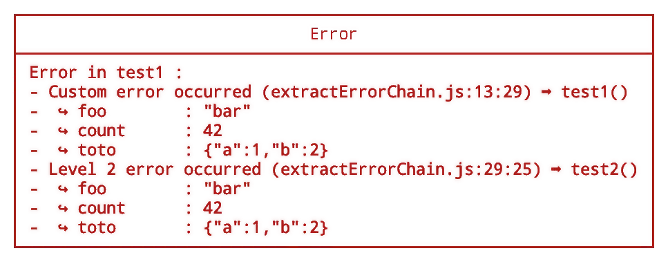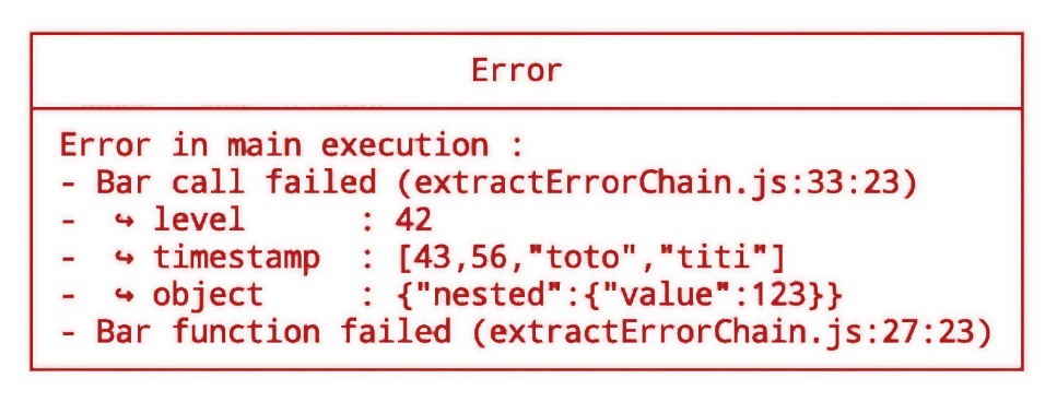 }The package export two methods extractErrorChain and displayErrorStack