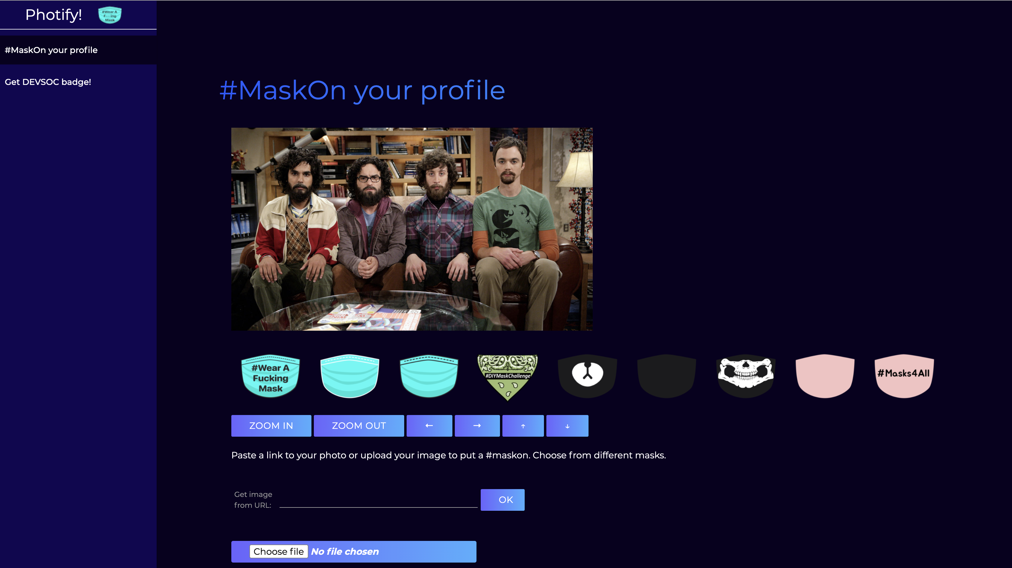 Photify is a project which helps the user make DEVSOC themed masks as well as badges for the social media challenge.