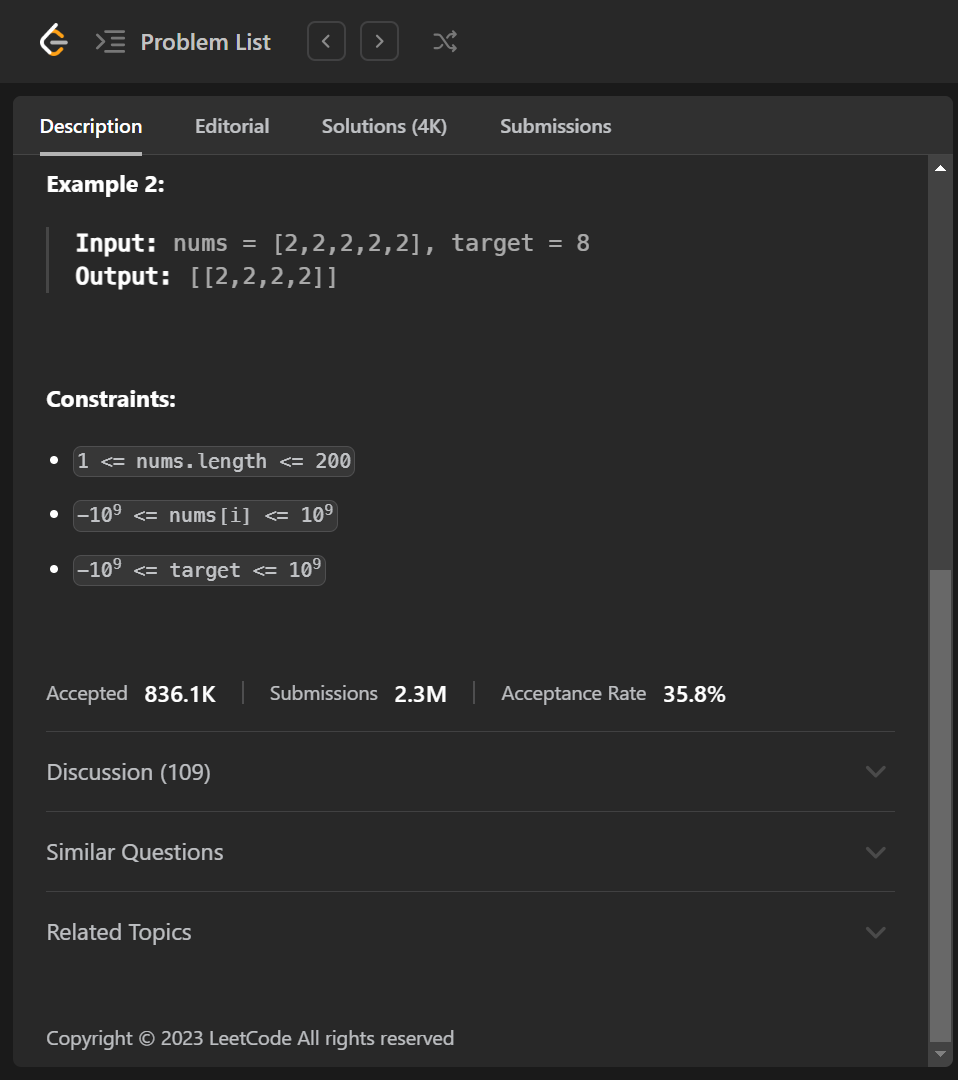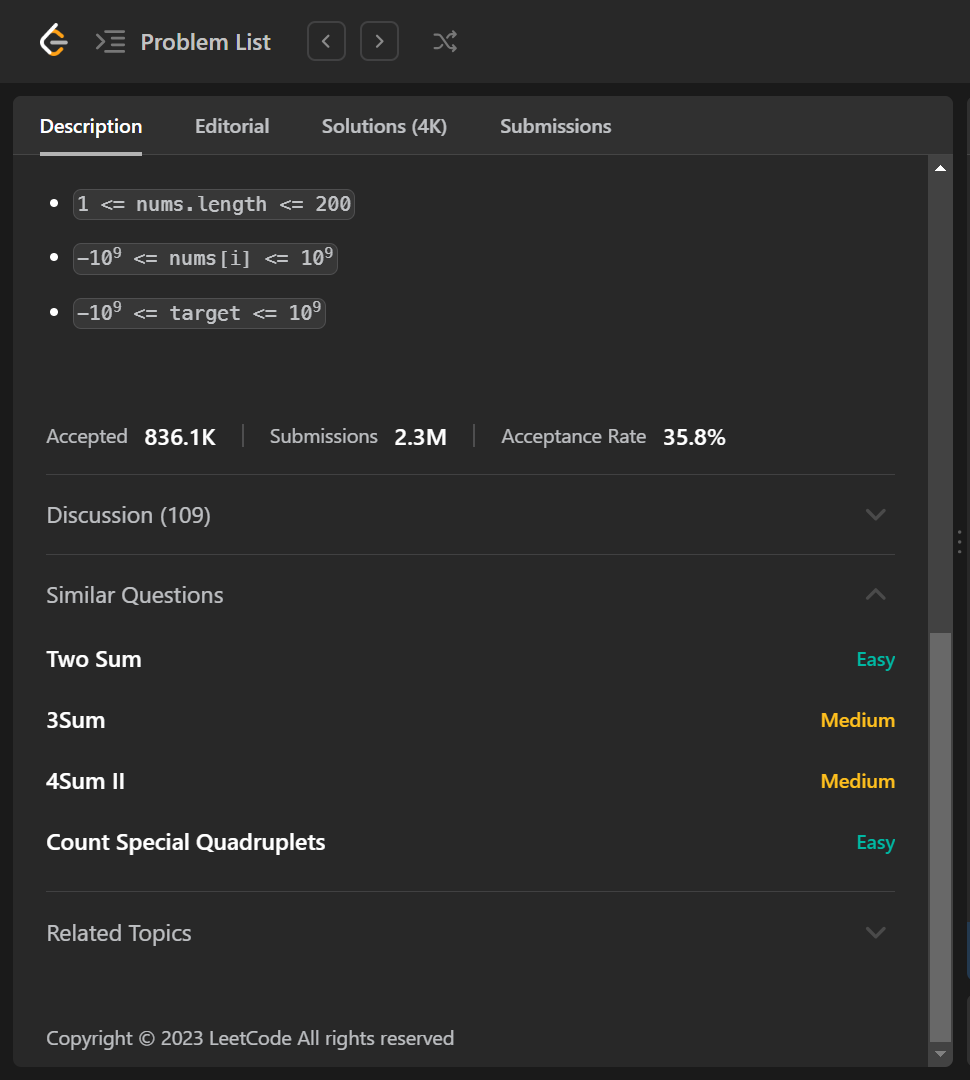 - similar_questions: List of similar questions to the current problem.
