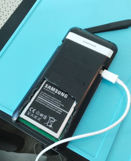 - The battery is replaced with a Samsung 3.8V Li-ion battery