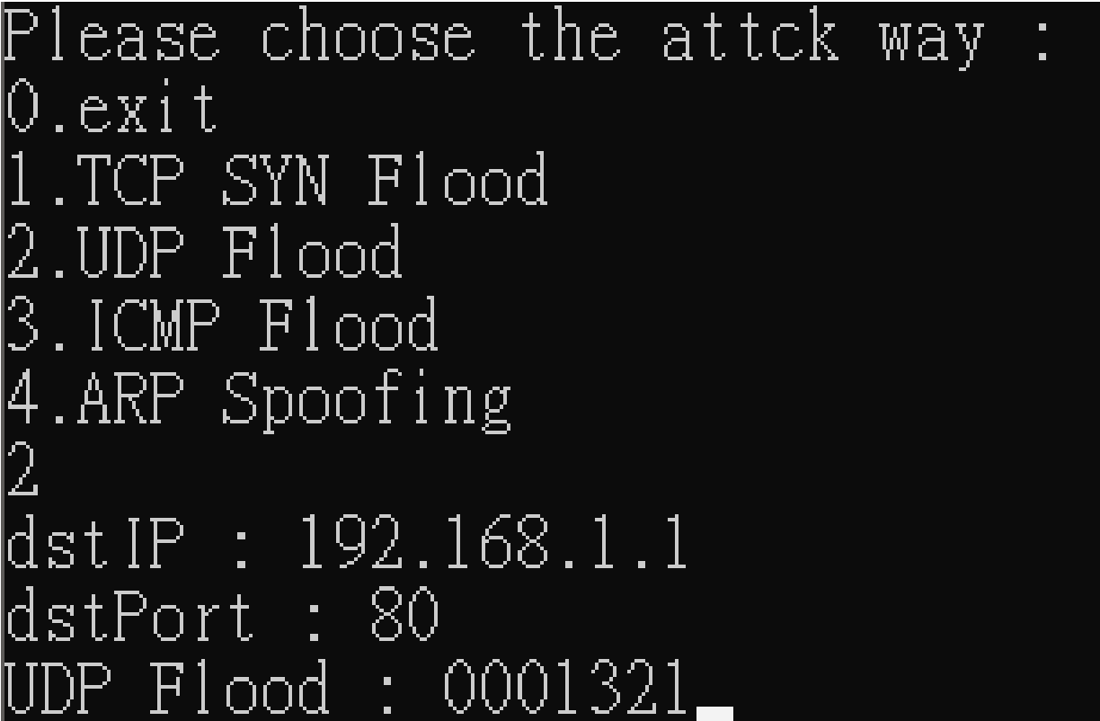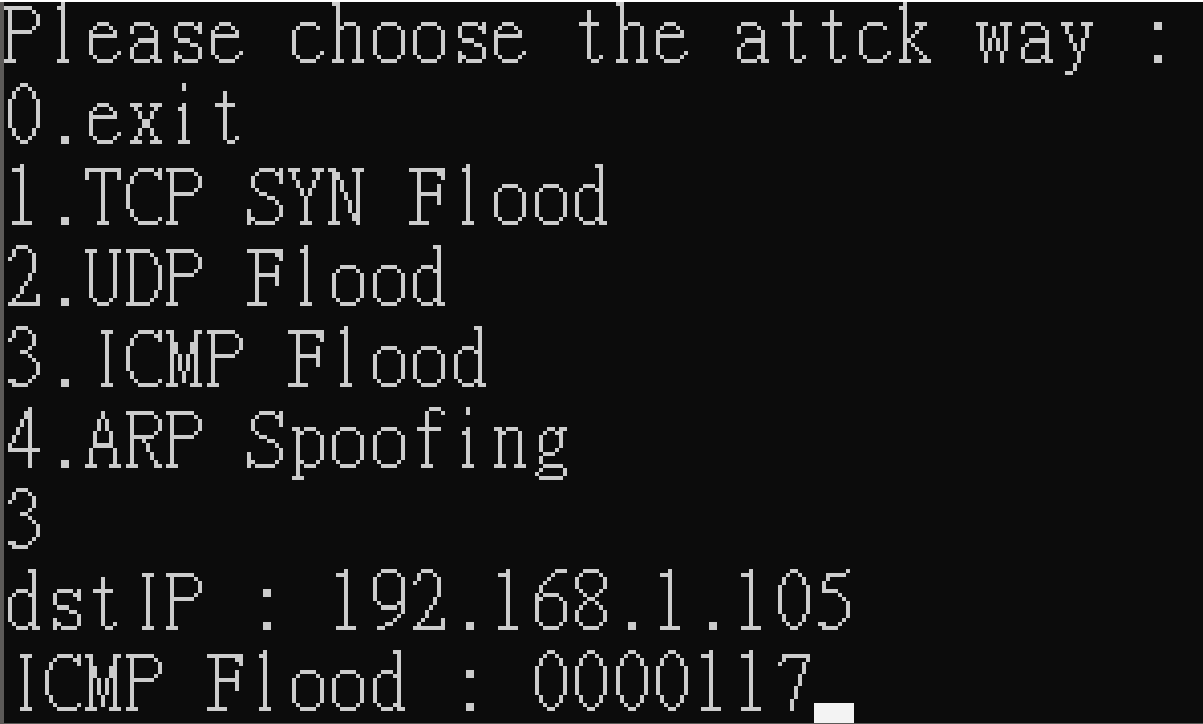 - ICMPFloodAttack : ICMP packet flood router or victim host