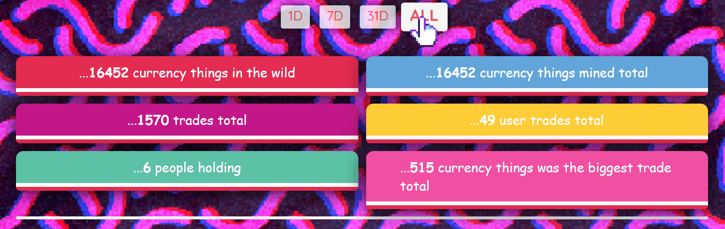 - Displays key statistics about Currency Thing usage, filterable by time period