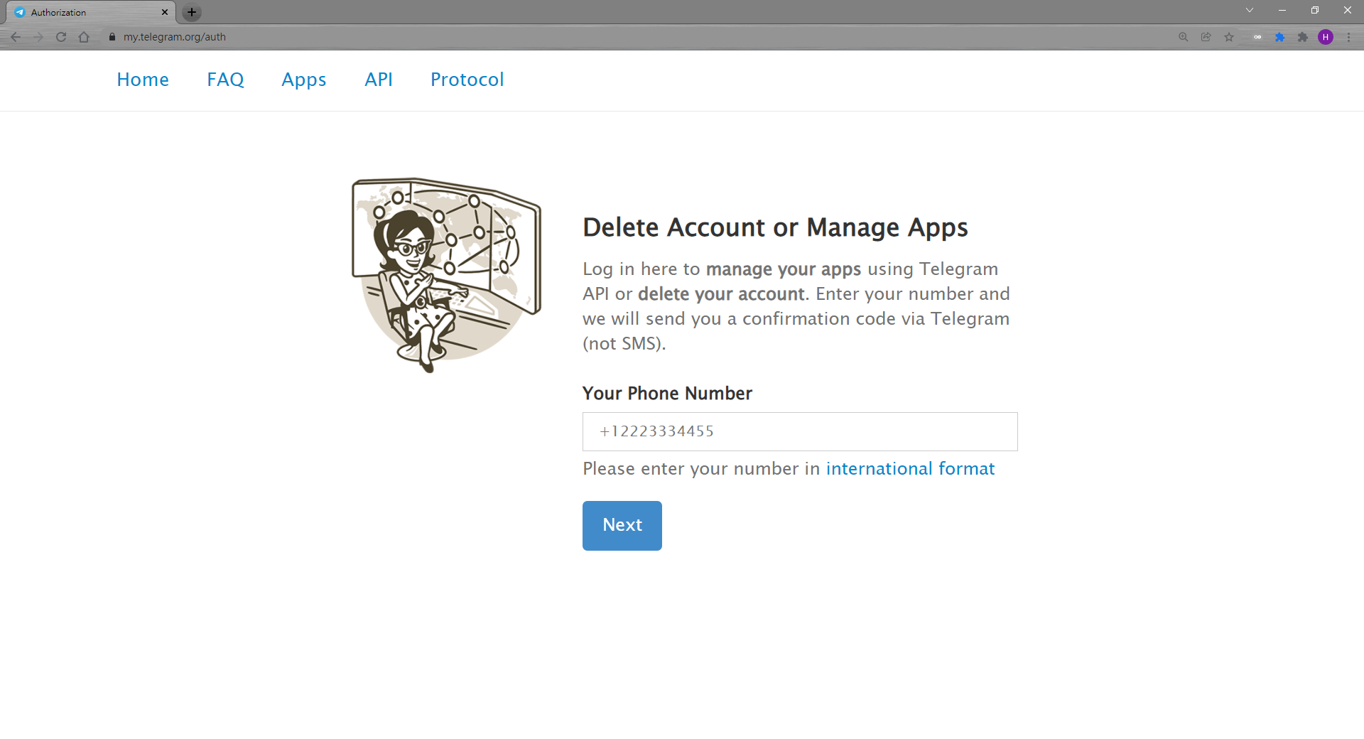 - 輸入電話號碼後會收到 telegram 寄送的驗證碼