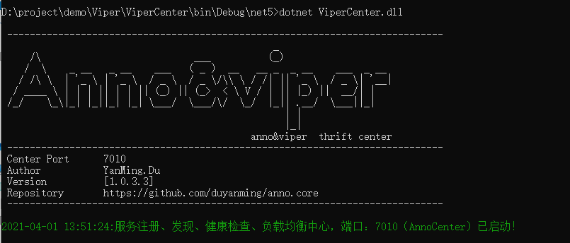 运行命令 dotnet ViperCenter.dll