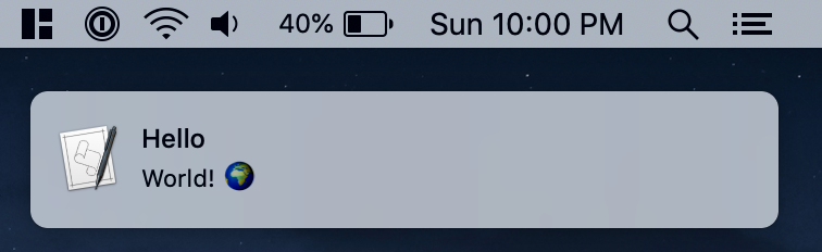 notifica::notify("<message title>", "<message body>");notifica::notify("Hello", "World! 🌍");Licensed under either of