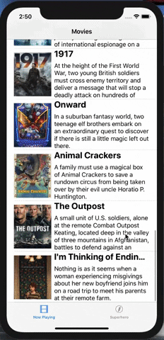- (5pts) User can tap a cell to see more details about a particular movie.