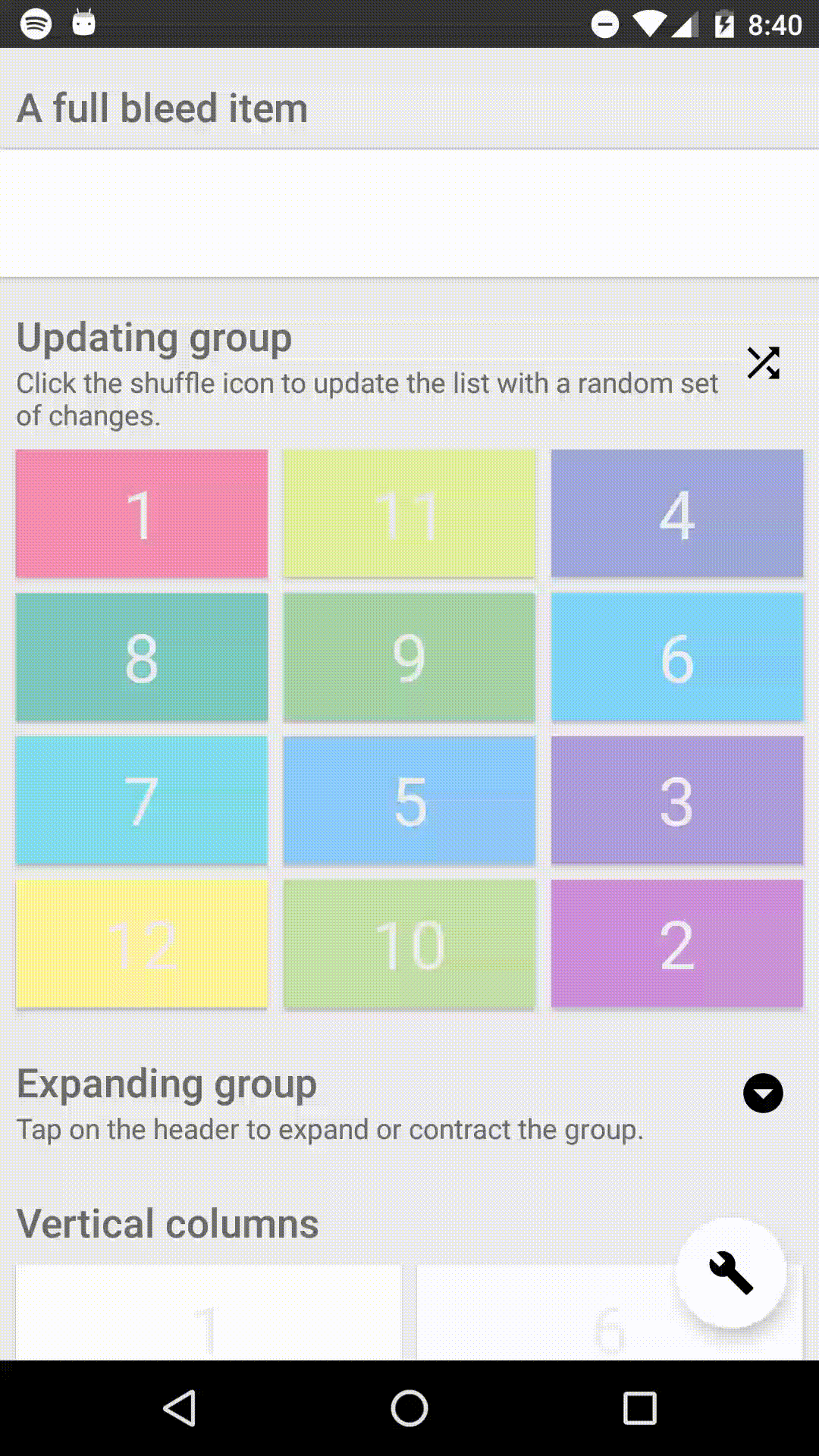 }Items can also declare their own column span and whether they are draggable or swipeable.