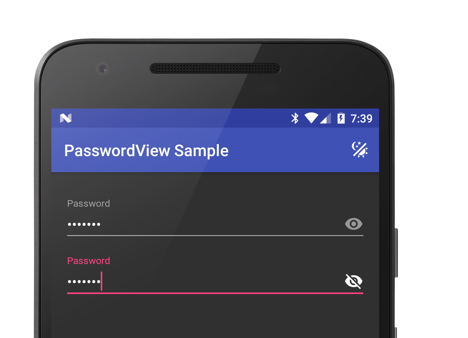 In the spec, the password field is pictured in Roboto. I really liked how this looked, so, I made PasswordView support custom typefaces! If you set one, it will stay. If you don't, the default is still monospace — no worries.