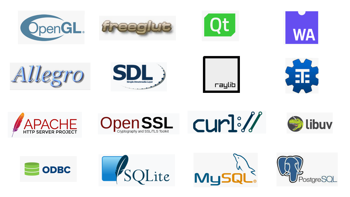 We believe in Games as a nice way to encourage people to learn to program. Ring comes with many game programming libraries in the standard library. Ring provides native support for Allegro, LibSDL, RayLib, OpenGL, FreeGLUT, Tilengine and Qt3D libraries. Also, Ring comes with a simple game engine for 2D game development using Declarative Programming.