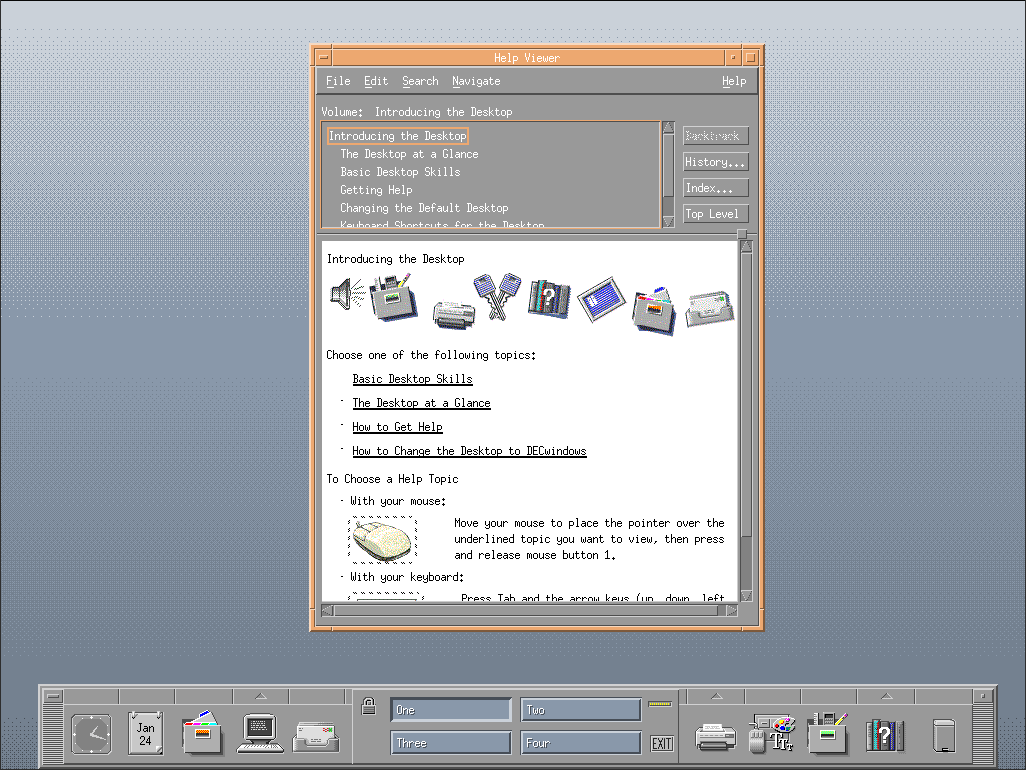 OpenVMS 8.4 desktop in AXPbox. Here is a wiki page showing you how to get this CDE desktop running