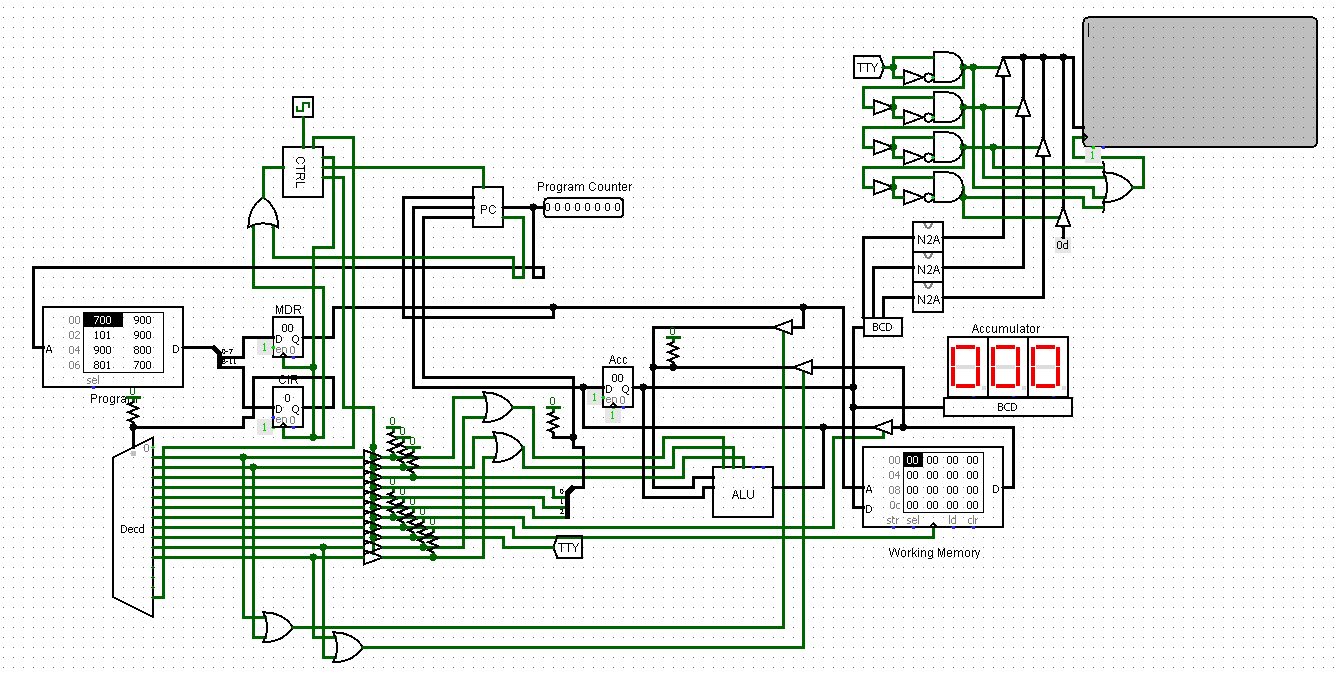 You can then load this into the ROM module in Logisim and run it by enabling the clock; ctrl+k